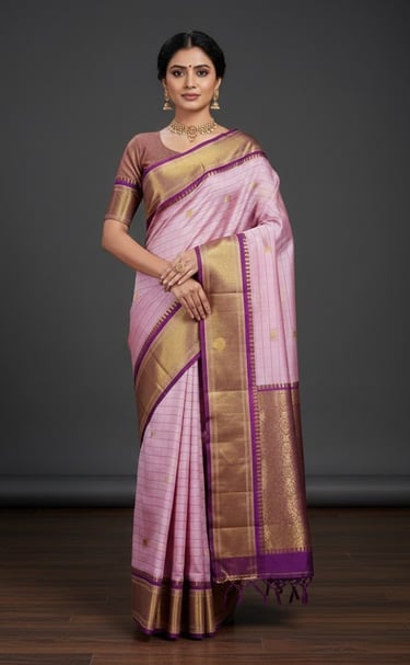 Make 12 pleats, tuck at center front waist, wrap anticlockwise, then drape pallu over right shoulder.
